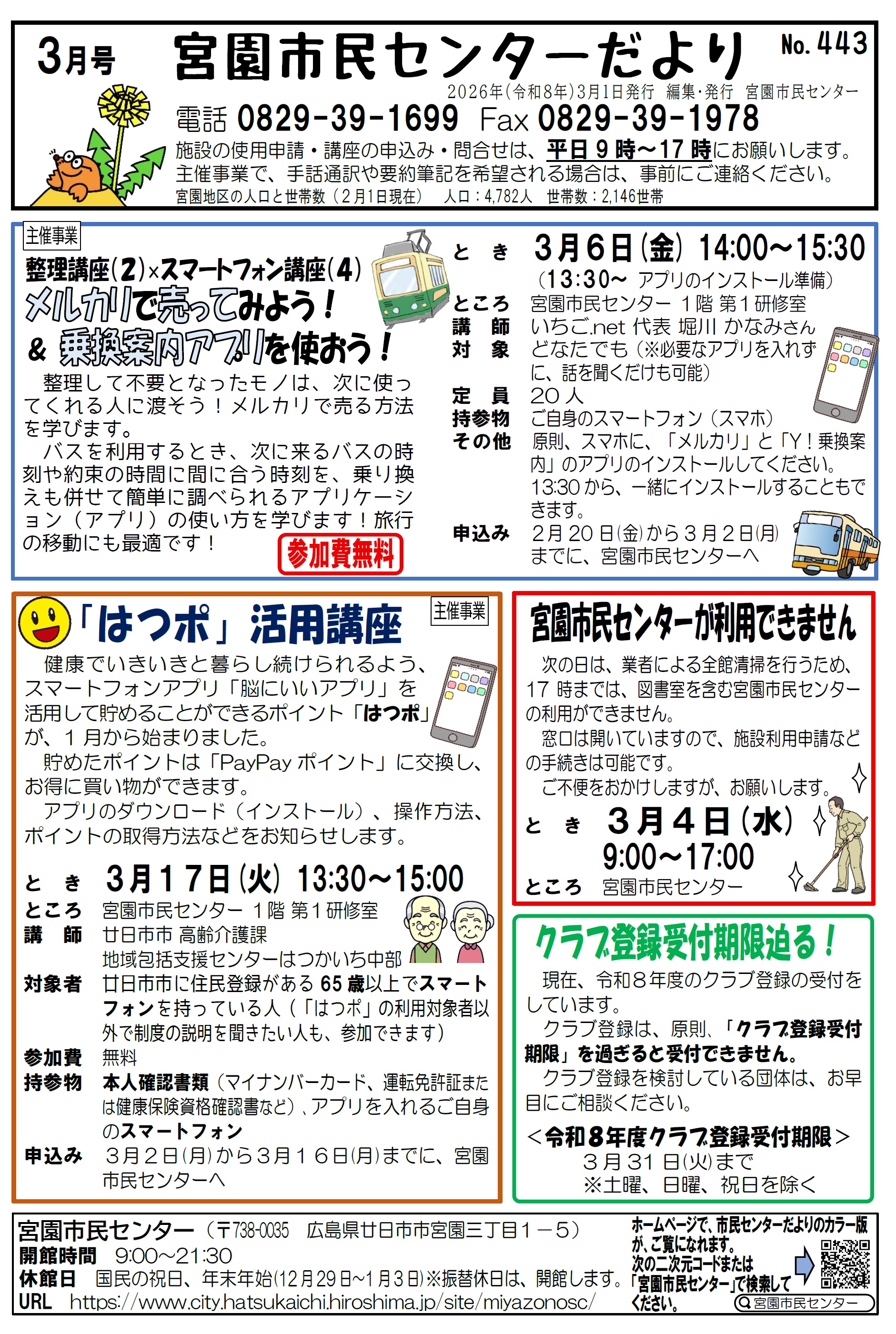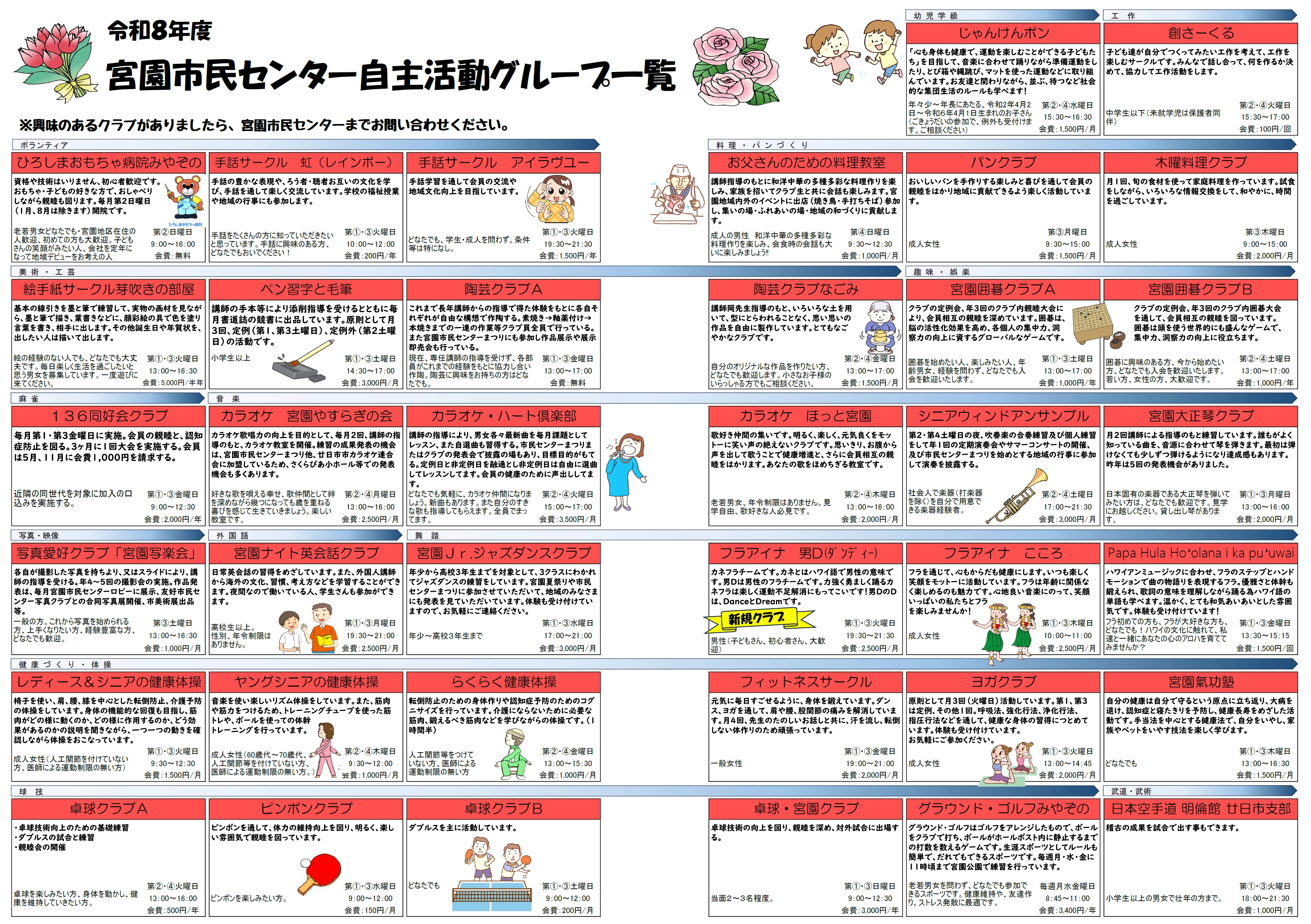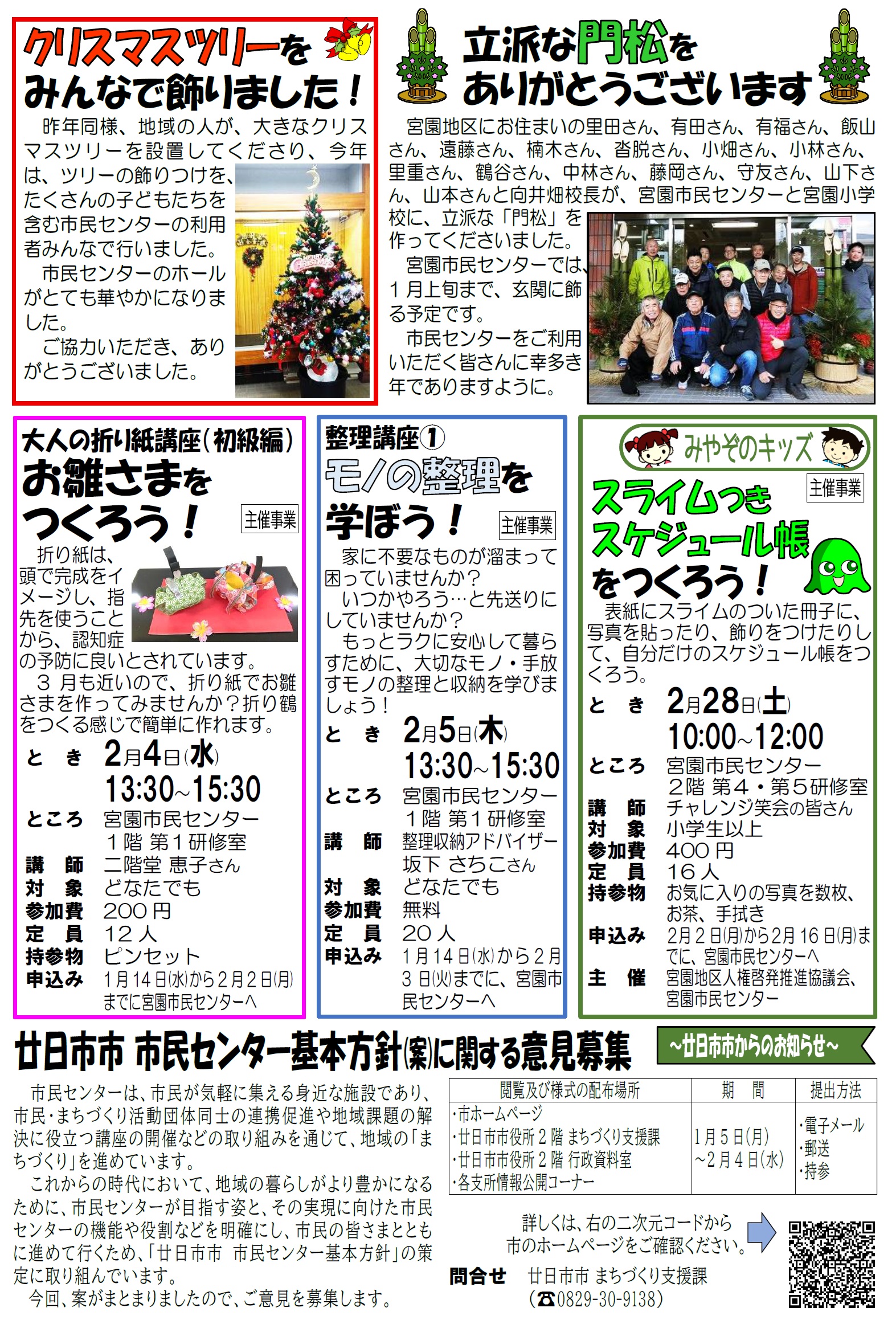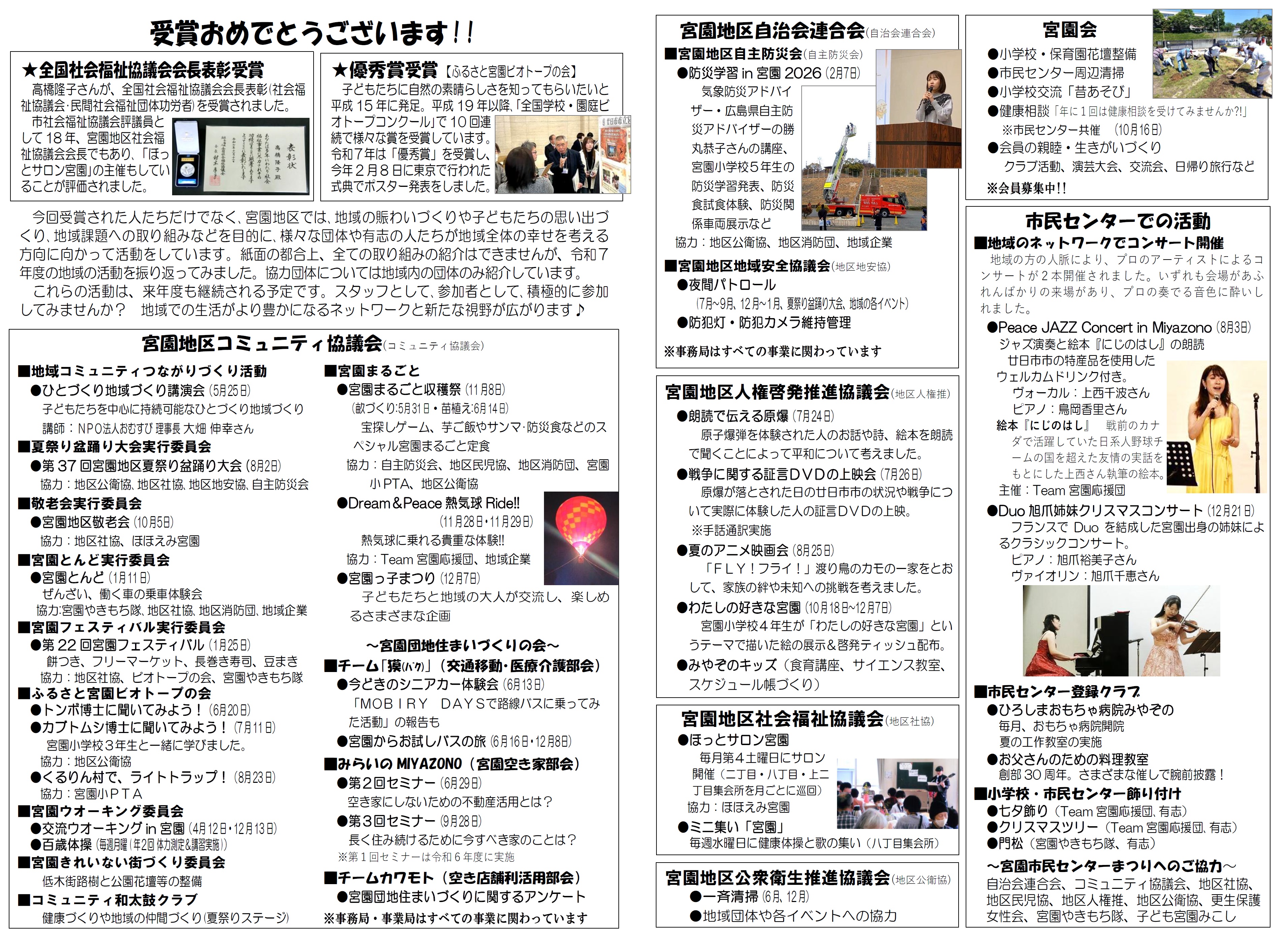 宮園市民センターは、毎月、市民センター行事や地域のことなどを記載した「市民センターだより」を発行しています。