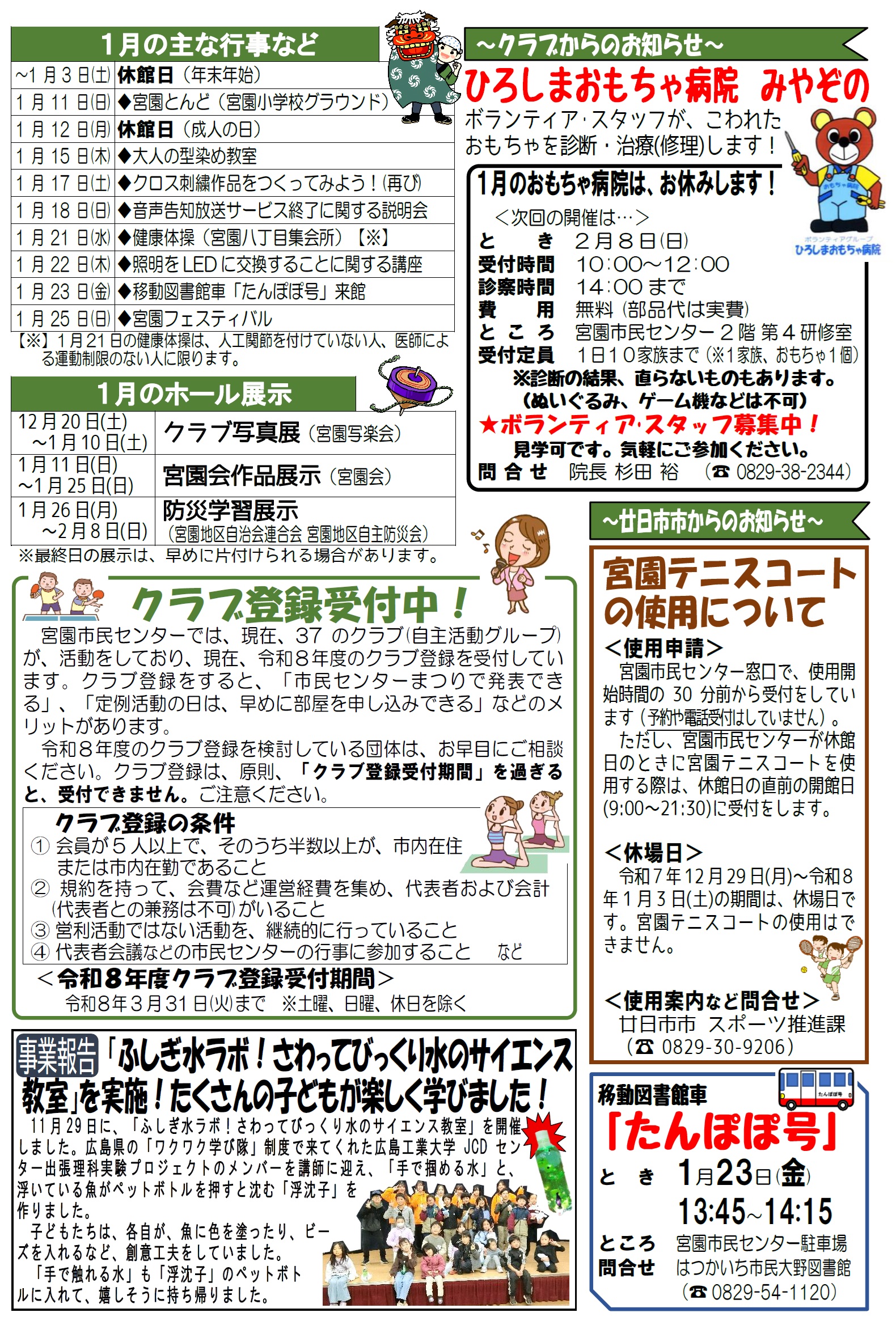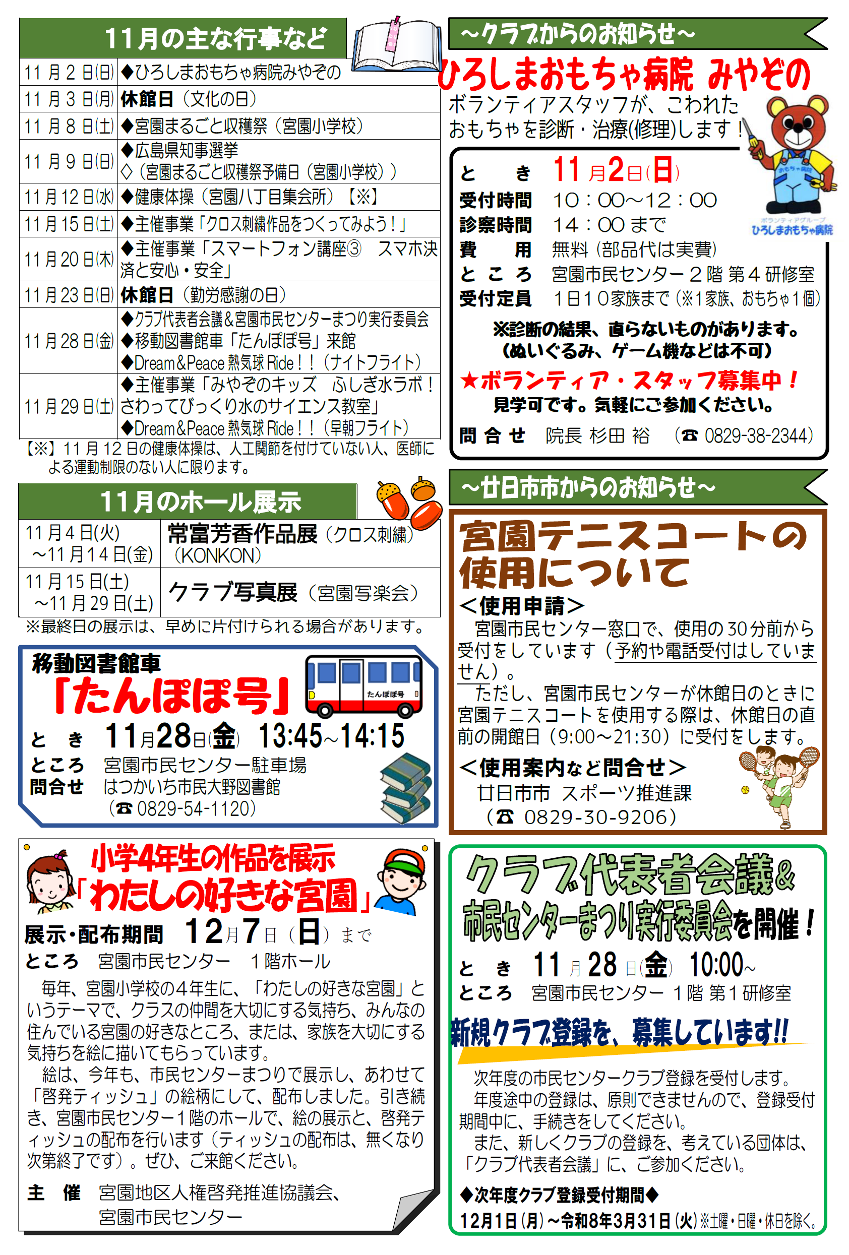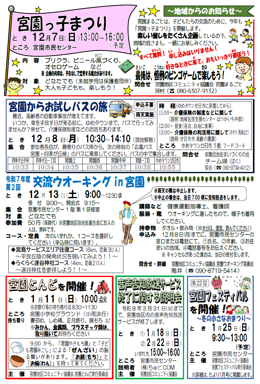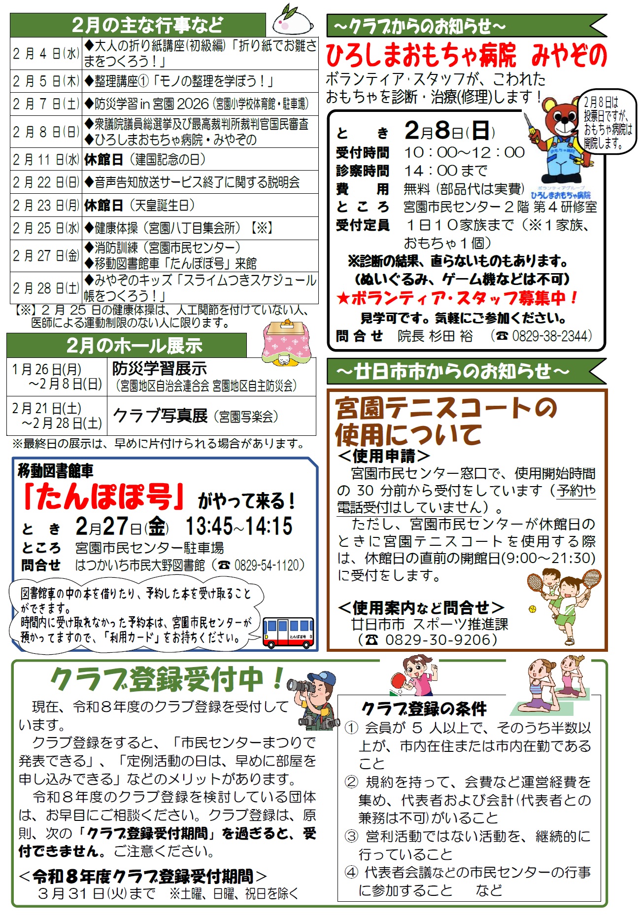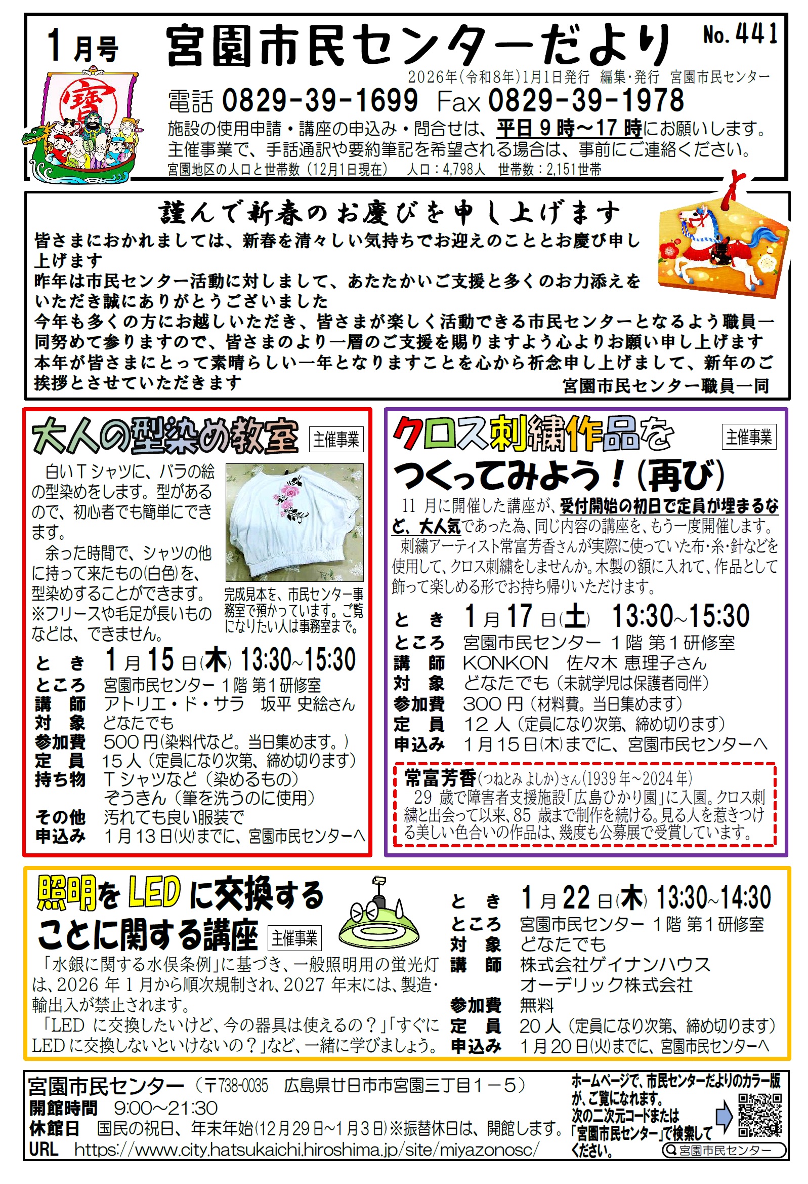 宮園市民センターは、毎月、市民センター行事や地域のことなどを記載した「市民センターだより」を発行しています。