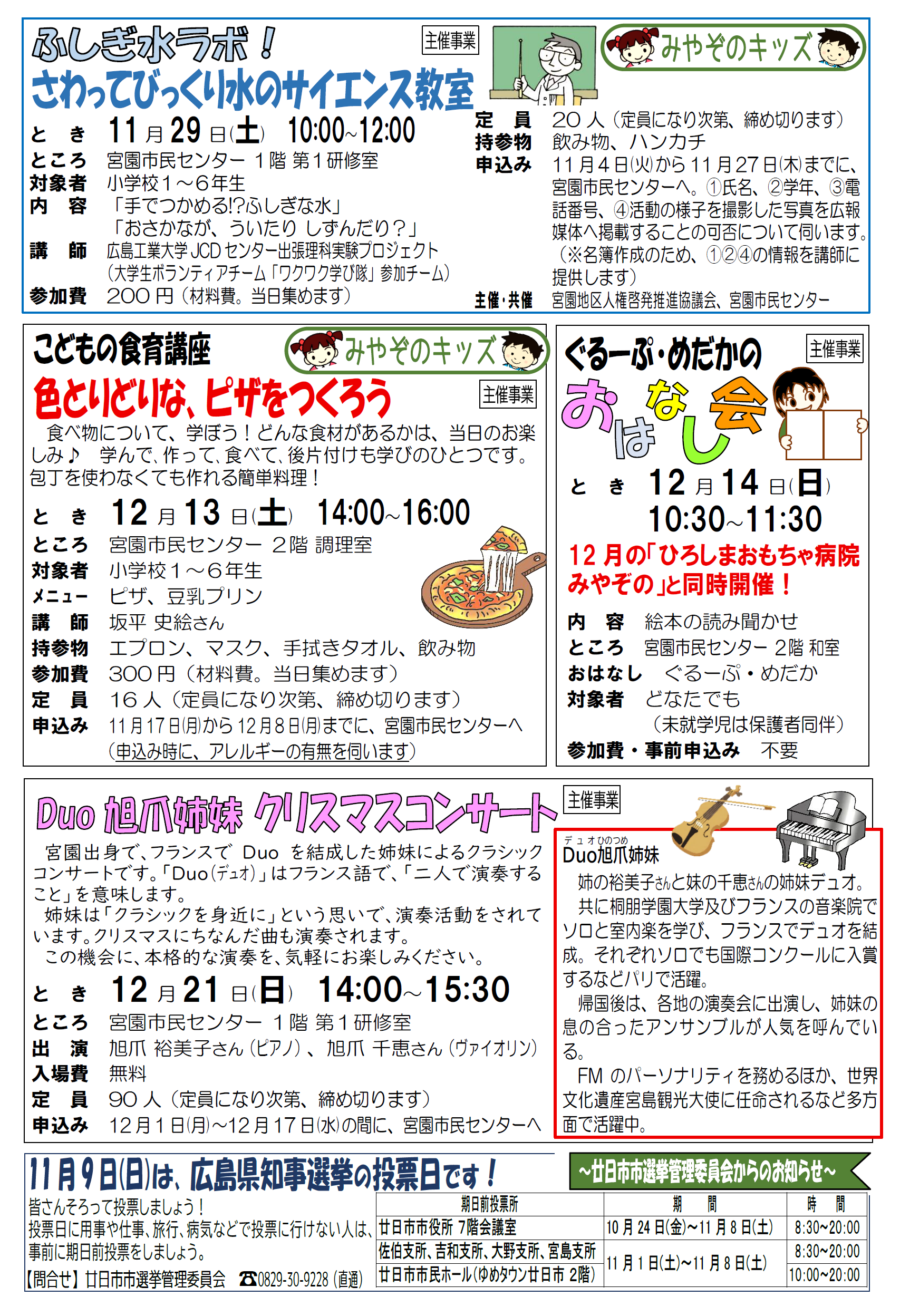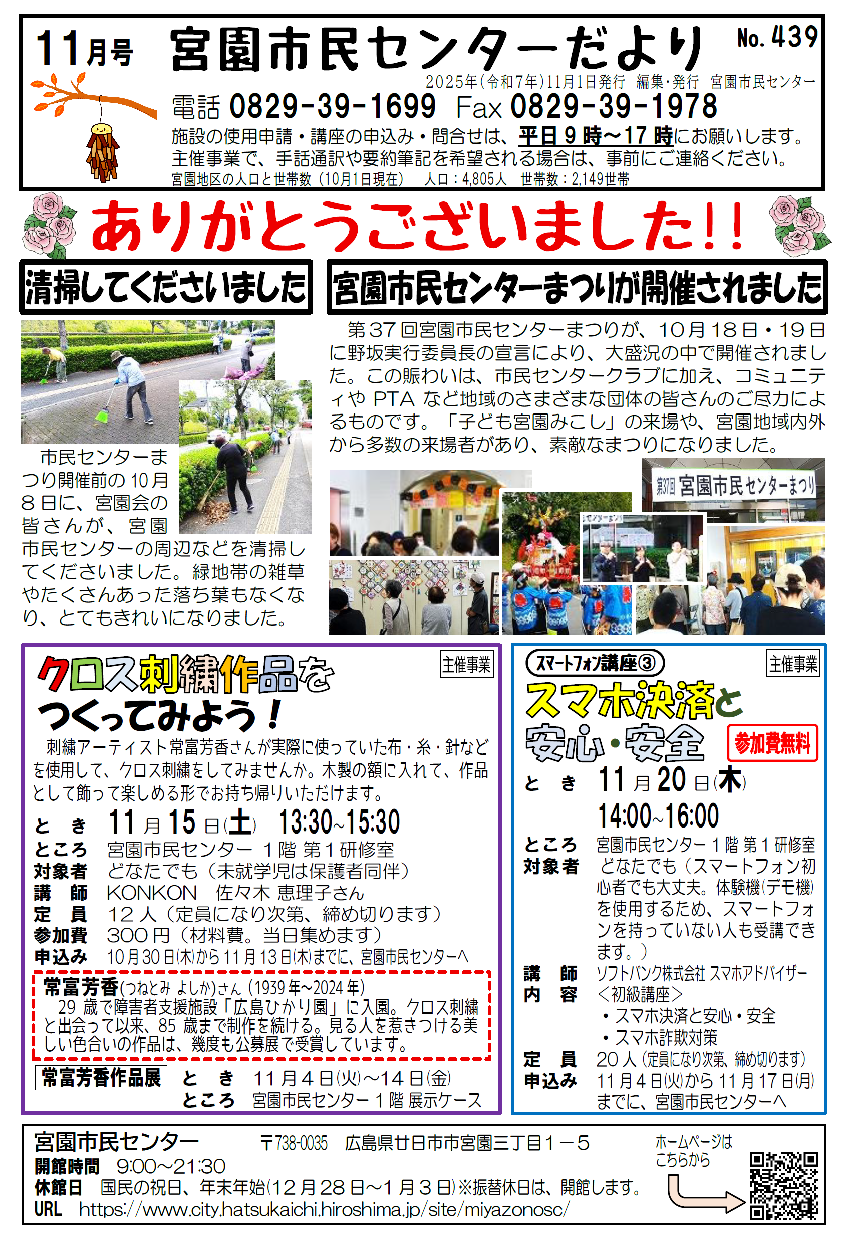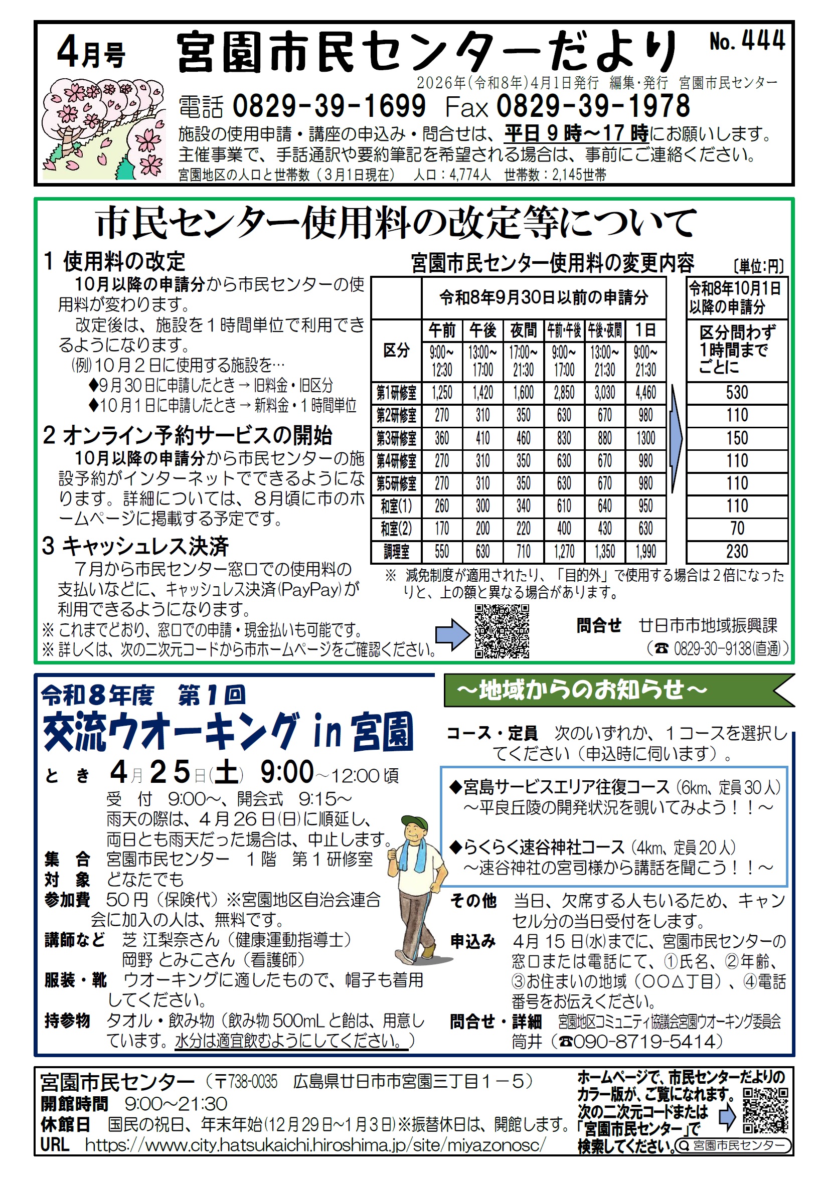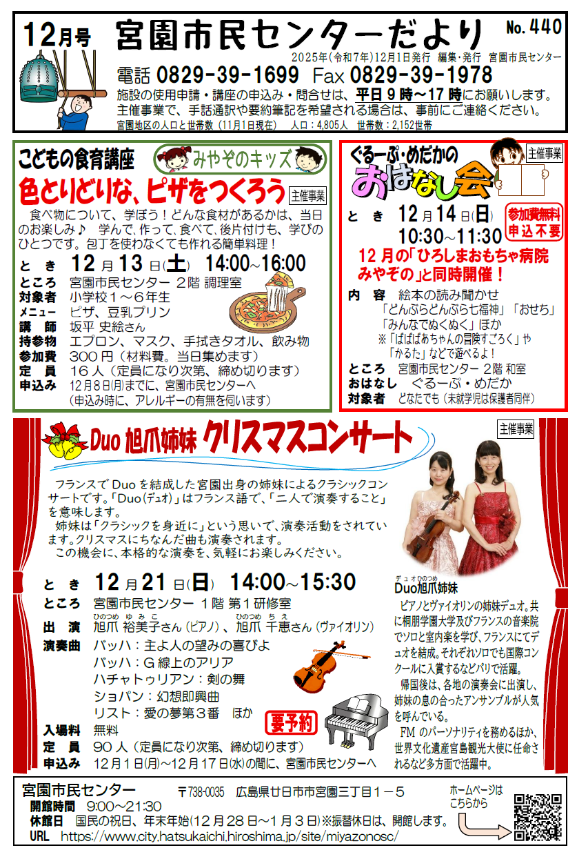 宮園市民センターは、毎月、市民センター行事や地域のことなどを記載した「市民センターだより」を発行しています。