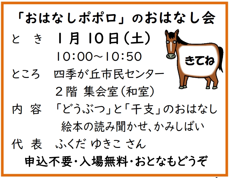 おはなしポポロのおはなし会 「どうぶつ」と「干支」のおはなし 絵本のよみきかせ、かみしばいほか |
